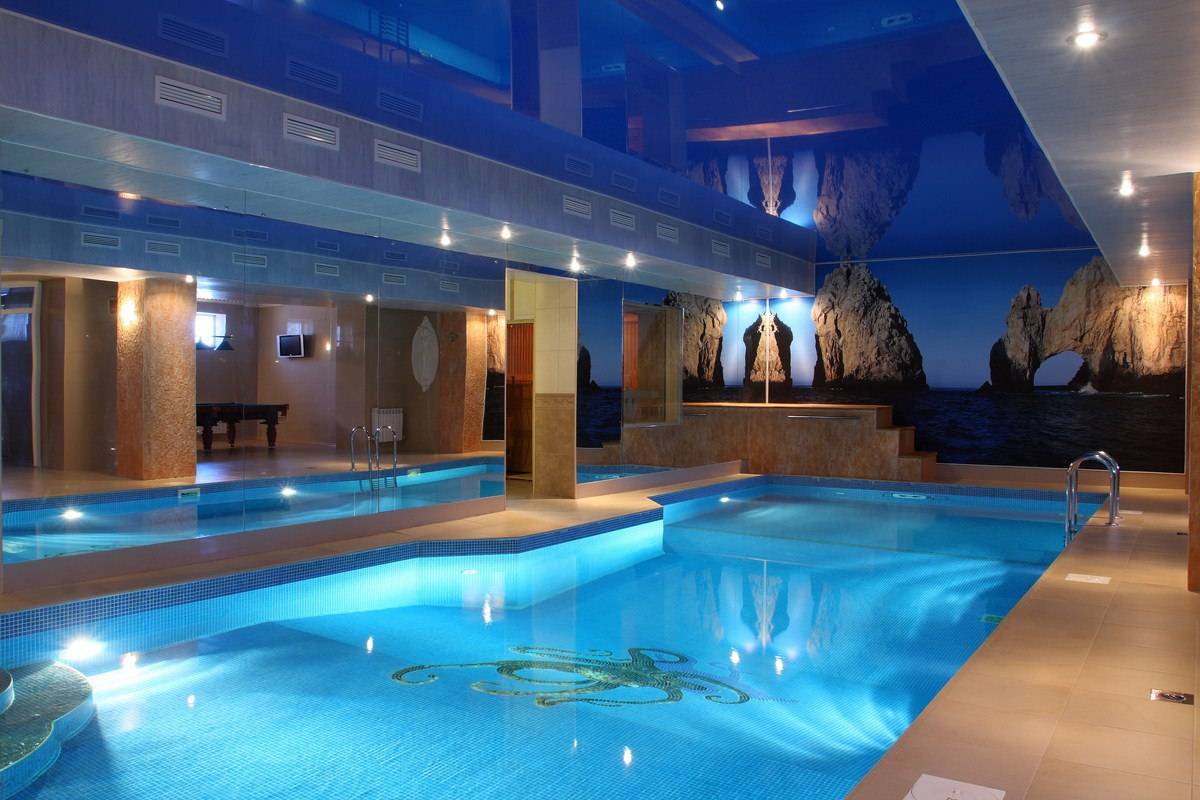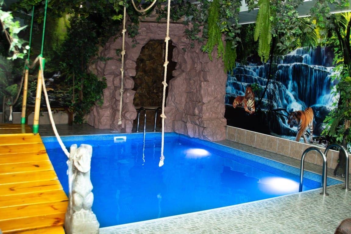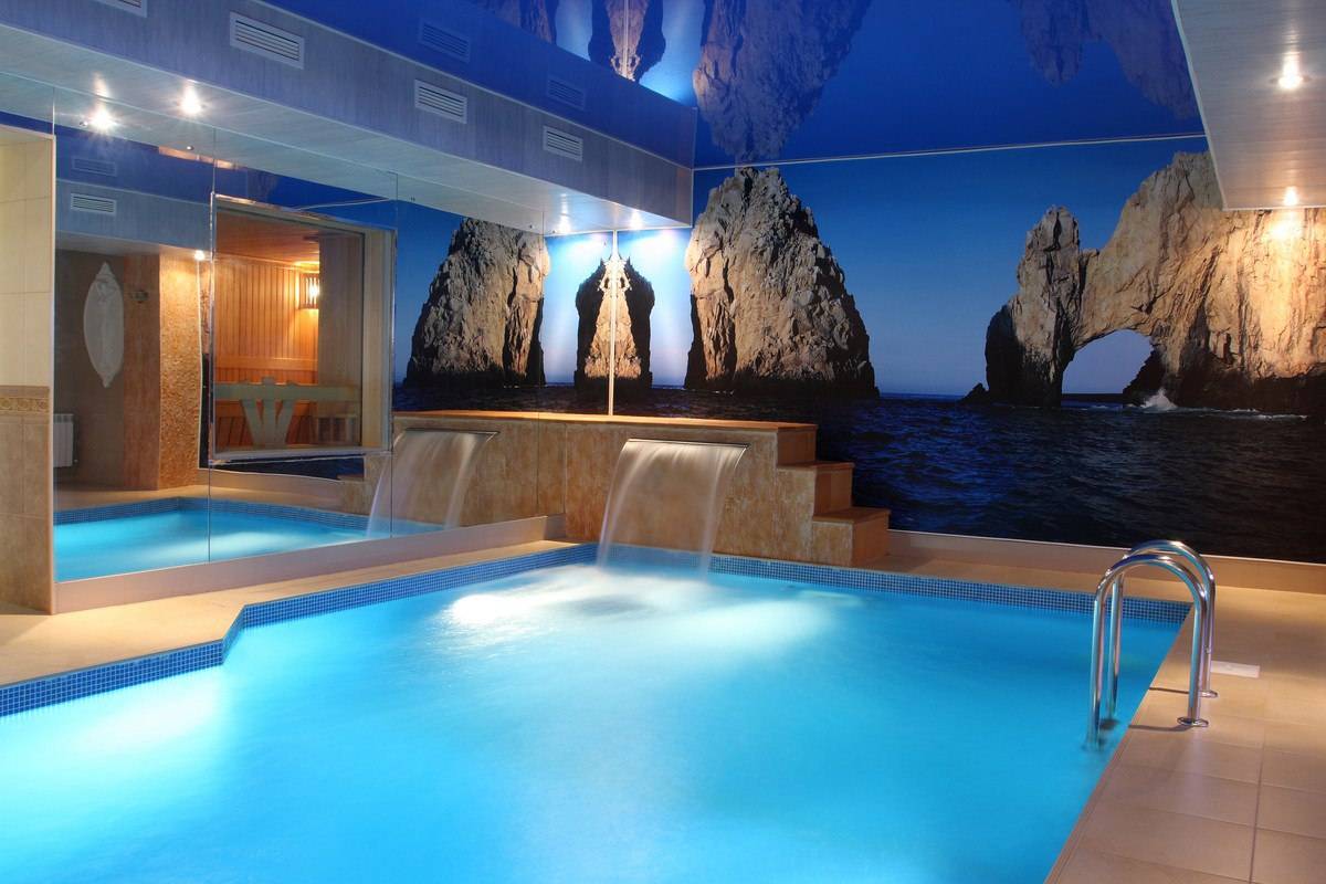 Бассейн, Размеры (Ш x Д x Г), м: 5 x 14 x 1.7, Гидромассаж, Гейзер, Водопад,